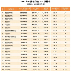 近日,中国银行业协会重磅推出“2021年中国银行业100强榜单”。