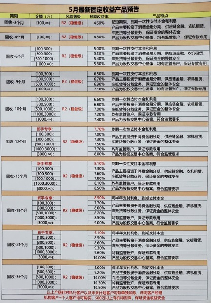 “您属于新客户,两年(期)的(产品)是(每)半年派息,年化收益是9.1%,很稳定。虽然现在叫类固定收益的产品,收益写的是预期收益,但是宜信成立15周年了,没有出现过一次违约和逾期。”