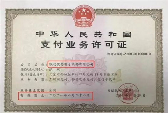 官网信息显示,联动优势电子商务有限公司成立于2011年1月,为海联金汇旗下企业。根据中国人民银行支付业务许可证核发信息公告,公司经营范围包括互联网支付、移动电话支付、银行卡收单等业务。在中国第三方支付移动支付市场交易规模排名全国第四(易观2019年排名)。