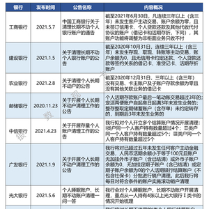 包括建设银行、农业银行、邮储银行、中信银行在内的多家银行也发布了相关清理长期不动个人银行账户的公告。