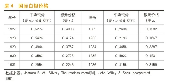 大革命时期和土地革命时期,红色货币的本位币均为银元,红色货币发行量折算分为四个步骤:一是利用货币与银元之间的比价关系,将货币发行量换算成银元;二是根据银元的含银量和国际白银价格换算为美元,如以“袁大头”代表银元,可认为银元含银量23.7克,相当于0.76金衡盎司,参考国际平均银价(见表4),计算出银元的美元价格;三是采用货币发行年份到2020年的美国CPI指数进行折算,得到货币发行量的2020年美元现值;四是按照2020年12月31日银行间外汇市场人民币汇率中间价为1美元兑人民币6.5249元,换算为人民币现值(见表1)。
