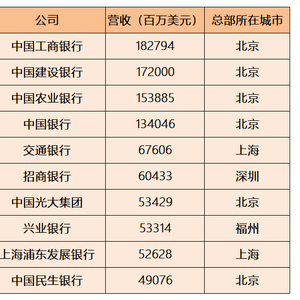其中,工商银行、建设银行、农业银行三大国有银行分别以458亿美元、393亿美元、313亿美元的利润,继续位列利润榜前10位。中国银行、招商银行、交通银行、兴业银行也一同跻身利润榜前50强。