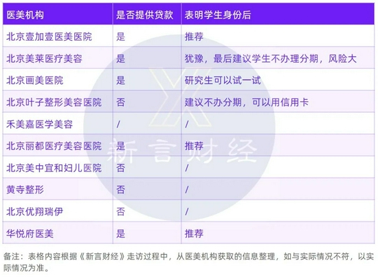 不过,《新言财经》近日走访发现有些医美机构比较规范,譬如,北京叶子整形美容医院、北京美中宜和妇儿医院、黄寺整形等多家医美机构直言“从不做分期”,且不建议学生办理分期。