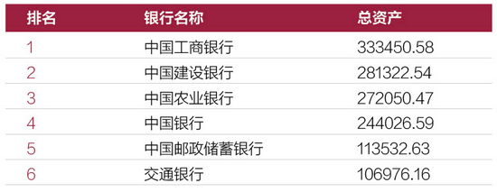 表2:2020年大型商业银行总资产排行榜(单位:亿元)