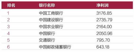 表6:2020年大型商业银行净利润排行榜(单位:亿元)