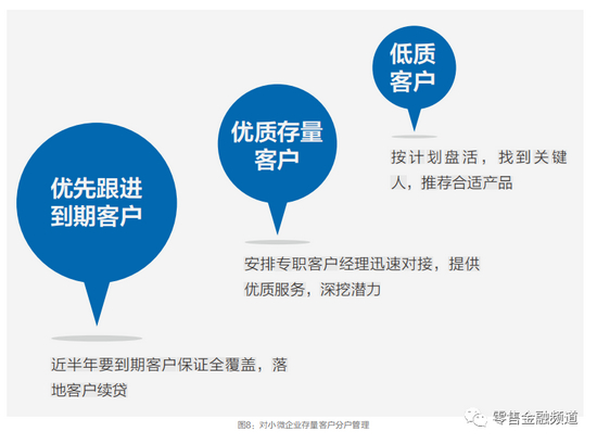 对于经营状况良好、贷款金额较大,甚至还有一定的存款和其它业务的优质客户,一定要安排专职客户经理进行对接维护,防止遗漏。此类客户还可以深挖上下游企业,追踪客户的资金流向,为后续进行公私联动以及获取新客户做好准备。