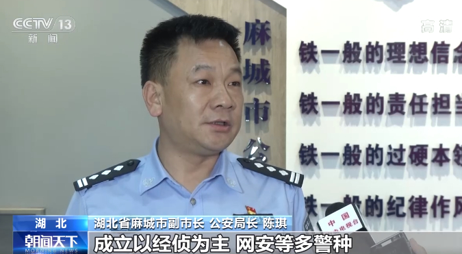 湖北省麻城市副市长 公安局长 陈琪:我们立即抽调警力,成立以经侦为主,网安等多警种协同配合的专案组,制订了周密的侦查计划,发挥了各警种的优势,合成作战,网上网下联动排查,综合研判,勾画了(犯罪团伙的)组织架构。