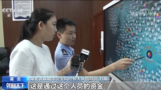 湖北省麻城市公安局经侦大队指导员 万刚:通过对资金的研判,发现有作案嫌疑的人员,这是通过这个人员的资金发散出来的涉案人员。我们通过这种研判发现关联的账户有一千余个,一千余个账户里面的流水信息量达到两千多万条。
