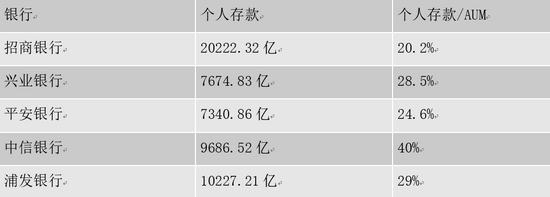在这一点上,股份行也走在了行业前列。过往的数据显示,六大行的个人存款占零售AUM比重基本上都在50%以上,其中,邮储银行的零售存款在AUM中的占比更是高达78%。