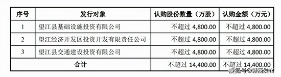 如9月17日发布的安徽望江农商行定向发行说明书显示,此次发行为确定发行对象的股票发行,募集资金总额不超过1.4亿元。此次发行对象为望江县基础设施投资有限公司、望江经济开发区投资开发有限责任公司、望江县交通建设投资有限公司。3家公司均是国资企业。此外,枞阳农商行的已确定发行对象中,也有2家国资背景的企业。