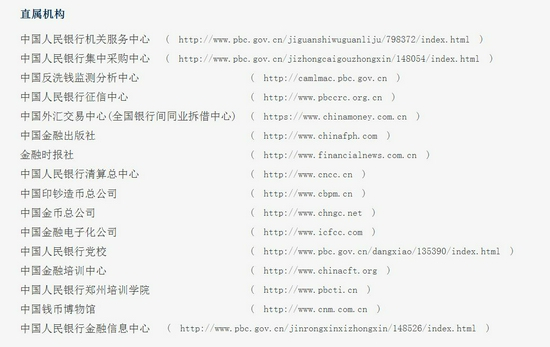 在央行官网,可以看到的是,“直属机构”一栏中,共计有16家。