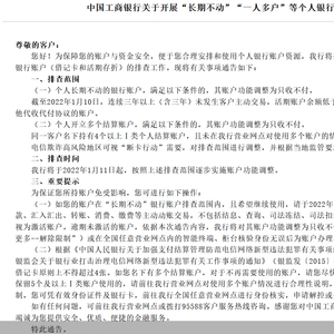 中小银行对“一人多户”的排查工作也在持续,此前,营口银行发布公告称,该行自2021年7月1日开始对同一个人客户名下存在5户及以上的Ⅰ类结算账户及符合三年以上未发生存现、取现、转账等主动交易,且在该行无任何签约业务的零余额个人活期存款账户开展了持续的核实清理工作,相关工作已接近尾声,核实清理工作截止时间由原2021年12月31日提前至2021年12月10日。