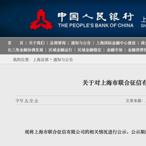 近日,中国人民银行上海分行发布一则公告,公示了上海市联合征信有限公司(下称“上海联合征信”)企业征信机构的备案信息。