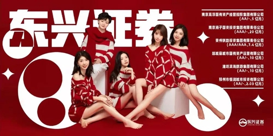 2021年12月24日,东兴证券一组债券产品的发行宣传照出圈。照片里, 5位来自东兴证券债券承销团队的女生,妆容精致、面容姣好、身材窈窕,穿成“下半身失踪”的网红风格、摆出女明星合照的温婉造型,虽然海报上满满的四个大字写着机构名称。