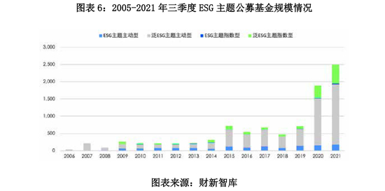 图表6:2005-2021年三季度ESG主题公募基金规模情况