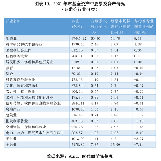 图表19:2021年末基金资产中股票类资产情况(证监会行业分类)
