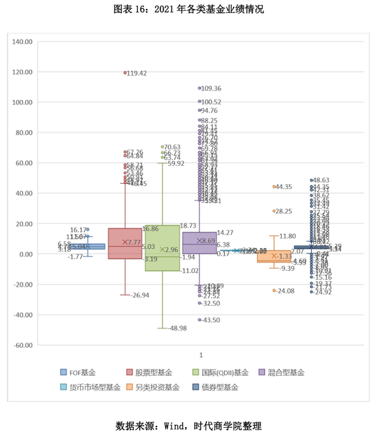 换句话说,2021年,混合型基金的平均业绩与业绩稳定性都好于股票型基金。