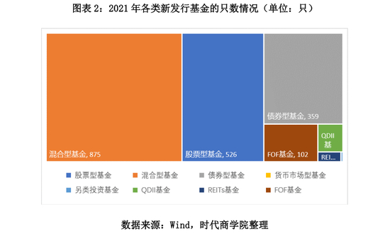 图表2:2021年各类新发行基金的只数情况(单位:只)
