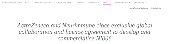 近日,阿斯利康宣布,旗下专注于罕见病领域的Alexion(以下简称“亚力兄”)公司与Neurimmune(瑞士生物技术公司)就NI006达成了独家全球合作和许可协议。