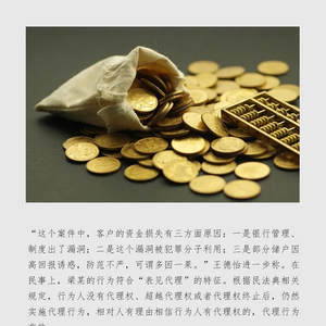 “这个案件中,客户的资金损失有三方面原因:一是银行管理、制度出了漏洞;二是这个漏洞被犯罪分子利用;三是部分储户因高回报诱惑,防范不严,可谓多因一果。”王德怡进一步称。在民事上,梁某的行为符合“表见代理”的特征。根据民法典相关规定,行为人没有代理权、超越代理权或者代理权终止后,仍然实施代理行为,相对人有理由相信行为人有代理权的,代理行为有效。
