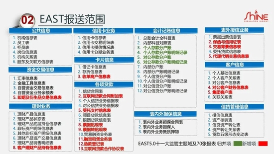 目前EAST已基本覆盖所有银行、人身保险公司、信托公司、部分地区财务公司,金融基础数据则覆盖了所有银行、财务公司、信托公司、金融租赁公司、汽车金融公司、消费金融公司、货币经纪公司。