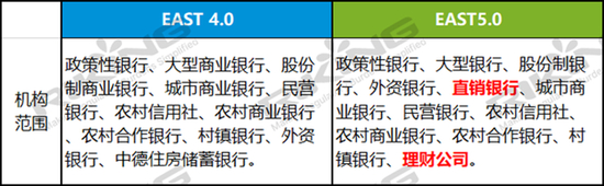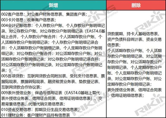 据RIKING统计,与2019年9月的EAST4.0相比,EAST5.0的适用范围增加了直销银行和理财公司;监管主题域新增了各项贷款、表内外担保信息、表外授信信息,并删除了统计全科目;监管目的也从“优化数据模型结构,从‘用’出发,删除使用率低的报表,增设风险业务的数据信息; 强调银行报送的数据质量和源头数据治理等等。