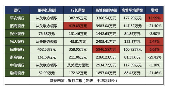作为参考,下为部分股份行高管薪酬。