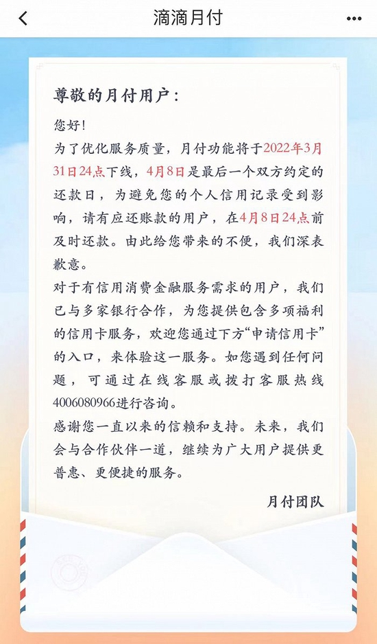 滴滴月付宣布下线!业内人士:信用支付产品未来境遇堪忧