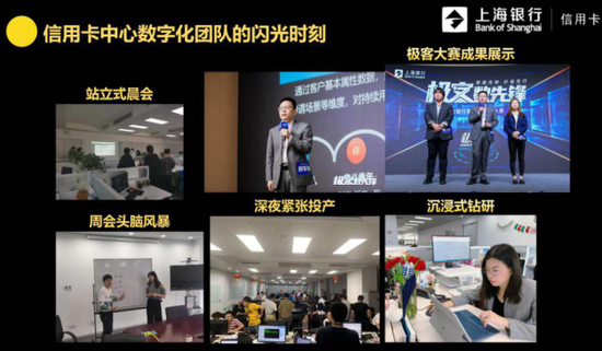上海银行信用卡中心顺应数字化趋势,凝聚青年员工组建数字化团队,让青年员工在营销、分期、风险、运营、开发等业务环节发挥大数据计算、业务建模、系统产品设计等专业优势,为银行数字化转型贡献青春力量。