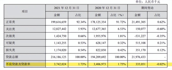 据中诚信国际披露,截至2020 年末,该行建筑业、房地产业及个人按揭贷款合计占比32.56%。而2021年,相应的占比进一步提升至33.13%。其中,房地产业贷款金额为185.64亿元,占比8.59%;建筑业贷款金额为222.11亿元,占比10.27%;个人住房抵押贷款金额为308.45亿元,占比14.27%。