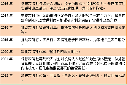 值得注意的是,2022年之前,有多年的“中央一号文件”提出:推动农信社省联社改革,保持农信社县域法人地位和数量总体稳定。