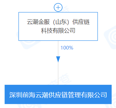 深圳前海云潮供应链管理有限公司则由云潮金服(山东)供应链科技有限公司(下称“云潮金服”)出资设立。其注册资本为5000万元,成立于2015年04月。