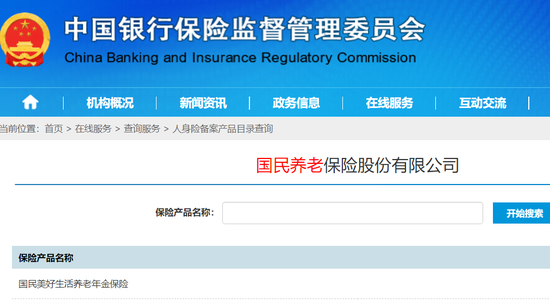 “中国银保监会人身险备案产品目录显示,国民养老保险产品国民美好生活养老年金保险已获得备案。”