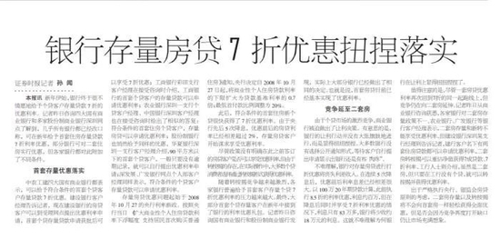 “2008年10月27日,央行将商业性个人住房贷款利率的下限扩大为贷款基准利率的0.7倍;最低首付款比例调整为20%。此后,符合条件的首套住房新个贷很快获得了7折优惠利率。由于央行先后5次降息,优惠前后的房贷利率已经相差超过2%,存量房贷客户开始谋求享受优惠利率。尽管政策没有明确在此之前签订的房贷客户是否可以享受优惠利率,但由于转按揭的存在,在实际操作中,大多数个贷消费者选择通过转按揭形式获得优惠利率。