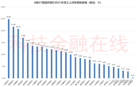此外,在27家银行中,拥有最少员工的无锡银行,其涨薪也颇为可观。