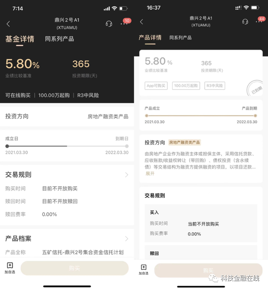 不过据多名投资者反映,该产品一开始在招行App上线时界面描述为基金,今年5月初调整了界面信息,增加了对于“房地产融资类产品”的解释,且删去“基金”字样。