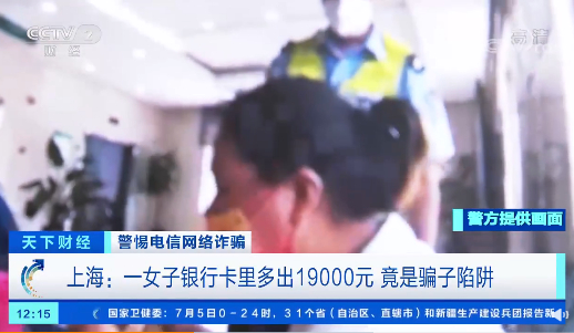 据央视网微博7月6日消息,近日,上海青浦区的李女士来到银行网点,要求给一个人账户转账19000元,原因是对方转错钱了,自己的卡上多了19000元,要还给对方。