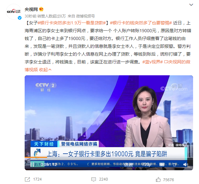 警惕!女子银行卡里突然多出1.9万元,以为是别人转错钱,还钱时才发现上当……
