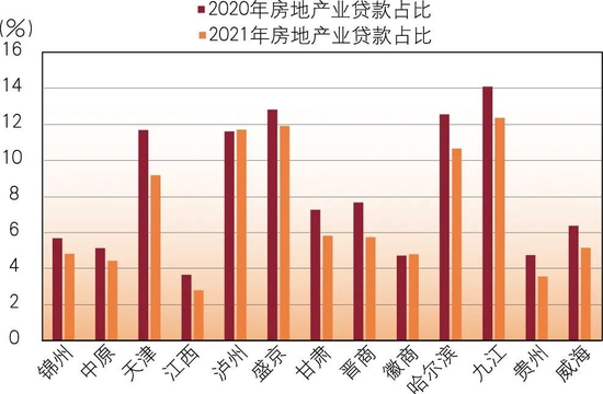 图2 2020~2021年A股上市城商行房地产贷款占比