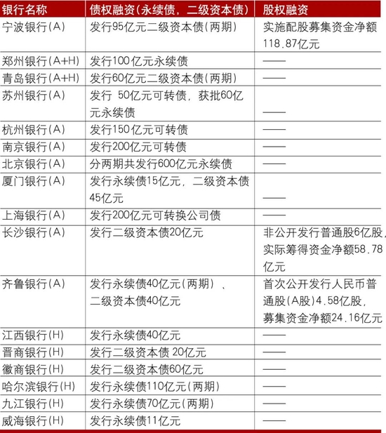 表7 2021年上市城商行资本补充情况