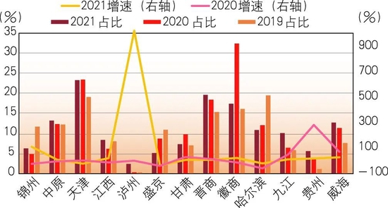 图7 2020~2021年部分上市城商行普惠性小微企业贷款变动情况
