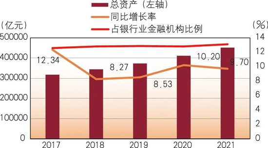 图1 2017~2021年城商行总资产变化情况