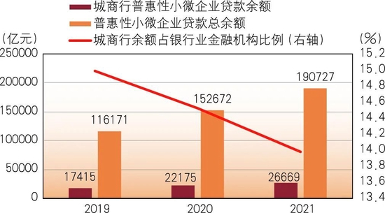 图6 2019~2021年全国银行机构、城商行普惠性小微企业贷款余额