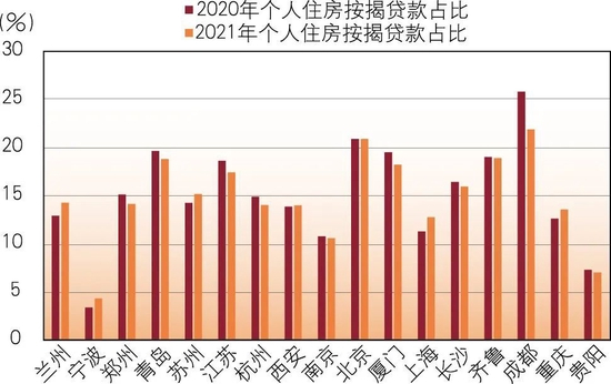 图4 2020~2021年A股上市城商行个人住房按揭贷款占比