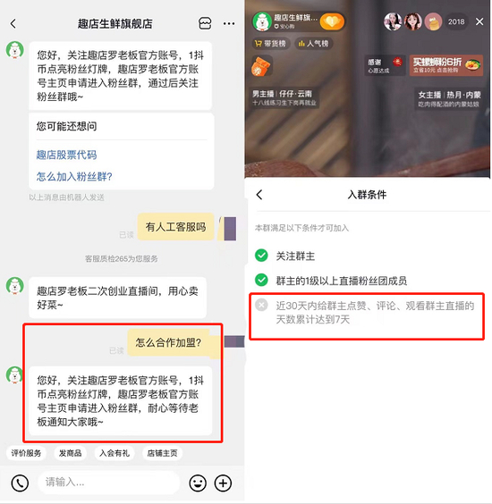 7月27日,蓝鲸财经记者试图通过官方渠道咨询加盟事宜,却发现合作加盟需要先进入粉丝群,而进入罗敏及旗舰店的粉丝群则需满足关注、点亮灯牌、累计互动达7日等要求。正如罗敏自己在采访时所说,粉丝级别高才有资格合伙,“你的等级不够,我们不给你这个机会,这就是一种信仰逻辑。”