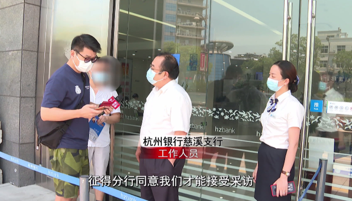 正当记者陪同甘先生准备走进杭州银行慈溪支行的大门时,银行的工作人员在门口表示,目前银行无法就甘先生遇到的问题,接受记者的采访。