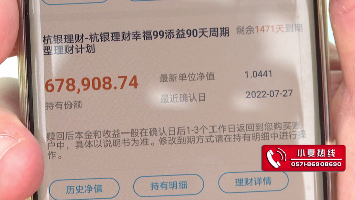 投诉人 甘先生:我总共理财的资产有200多万,不是同时买的,前前后后好多年了,总共有十几笔。我经常会看一下手机银行里持有资产的总金额,在7月8号的时候,我的持有资产的总金额比7月7号的时候少了5000块钱。