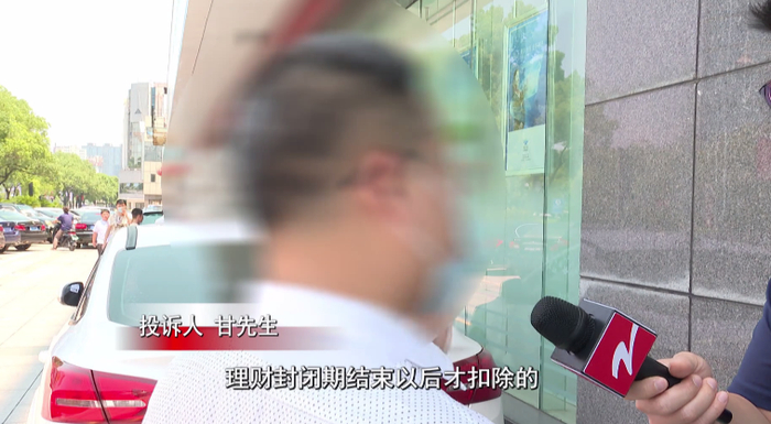 投诉人 甘先生:我签合同买理财的时候,返回头去看那个理财的合同,就是产品说明书,它所有的费用都是要到理财封闭期结束以后才扣除的,就等于说到期了以后,到期才能扣,那一般老百姓都知道的,不可能中间给我扣管理费的啊。