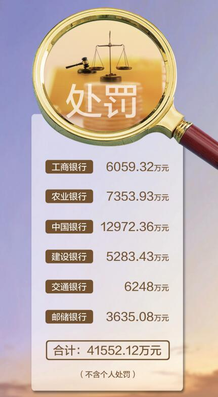 据不完全统计,2021年,工商银行、农业银行、中国银行、建设银行、交通银行、邮储银行等6家国有大型商业银行(含分支机构)合计被罚41552.12万元。在违法违规业务中,多项涉及违规发放贷款、违规开展影子银行业务、内控管理不到位等问题。与此同时,大行普遍对照违法违规内容进行了相关整改,同时在完善内控制度等方面取得新进展。