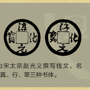 中国古代的文化艺术在宋代达到了巅峰,文人士大夫精致、典雅的审美意趣体现在各个方面。宋钱铸造精美,钱文书法异彩纷呈,真书、草书、隶书、篆书、行书都出现在货币上,而且有皇帝亲自书写钱文的御书钱,如淳化元宝由宋太宗赵光义书写真书、行书、草书三种钱文,宋徽宗赵佶则书写了崇宁通宝、大观通宝的瘦金体钱文。宋钱还有钱文相同,书体不同的对钱,如元丰通宝、绍圣元宝、圣宋元宝、重和通宝、宣和通宝、宣和元宝等等,是宋钱书法艺术的集中体现。